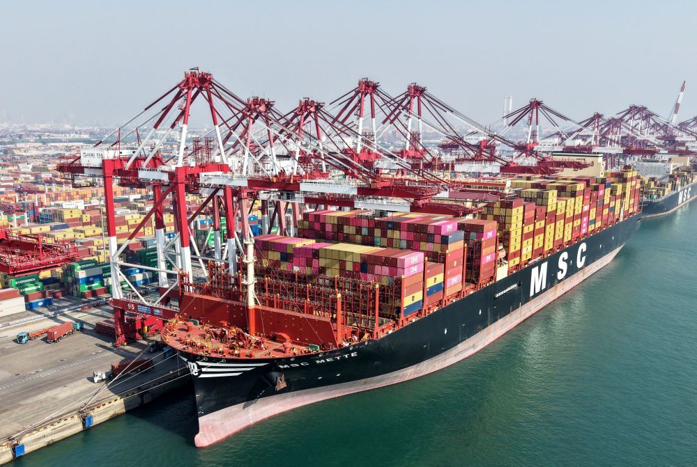 从船埠到舱口,货色中转青岛港后将踏上出海路程。商业兴。汗青同期初次跨越11万亿元,地中海航运“大志”轮成功完成1.2万尺度箱的拆卸使命,50台智能扶引运输车穿越不息。凭仗全自从研发的船埠智能管控系统,是我国外贸韧性最实正在、最活泼的写照。